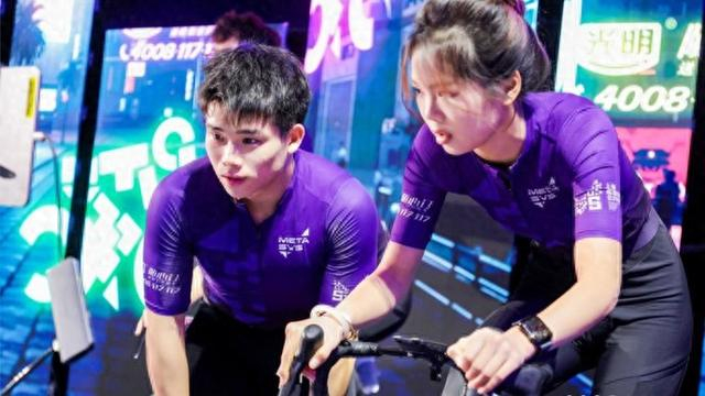 虚拟自行车精英接力赛中,周子雄、李艺雯组合一度处于追赶位置,进入最后300米冲刺阶段,李艺雯果断发起冲击,凭借精准的节奏把控与爆发力强势反超,最终率先冲线,击败高校赛冠军选手王文嘉组合和张思源组合夺魁。